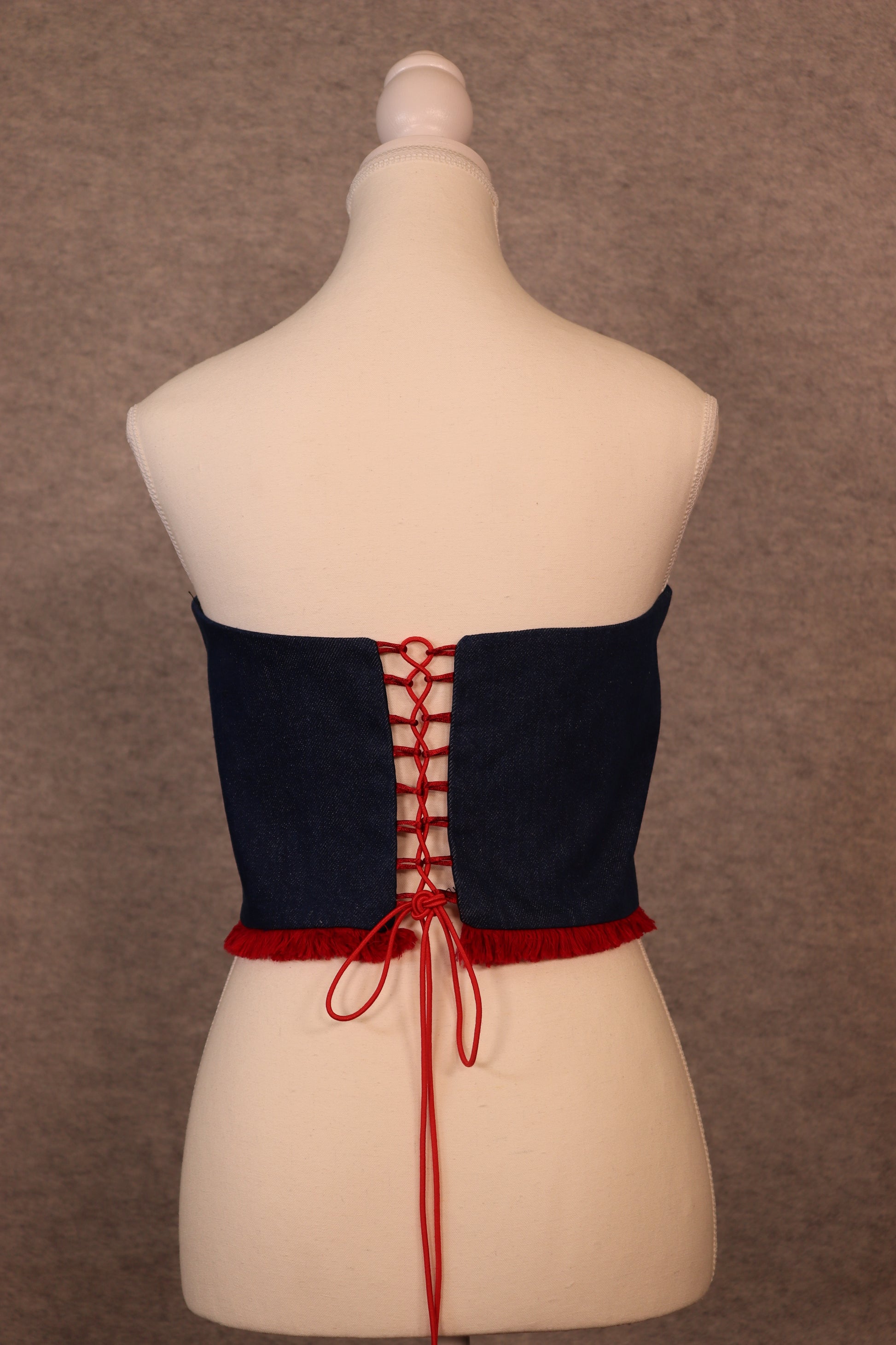 She’s not just a crop top — she’s an eye-catching, one-of-a-kind piece crafted from high-quality denim fabric. With her lace-up back, she lets you decide the mood: tie her snug for a sleek, body-hugging evening look, or loosen her for a relaxed, casual vibe.