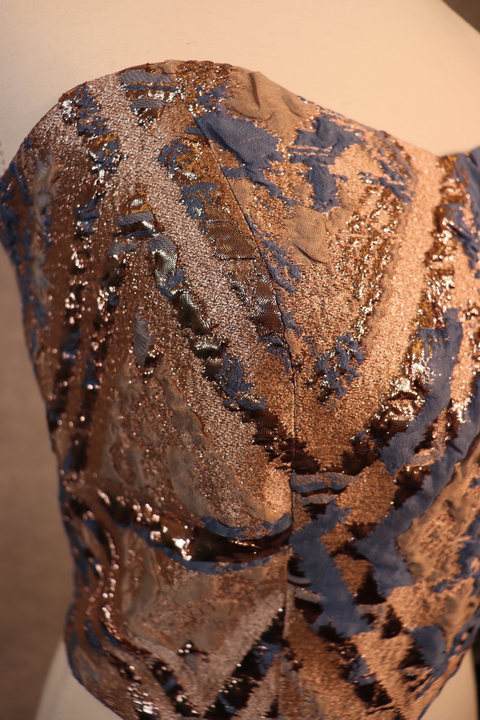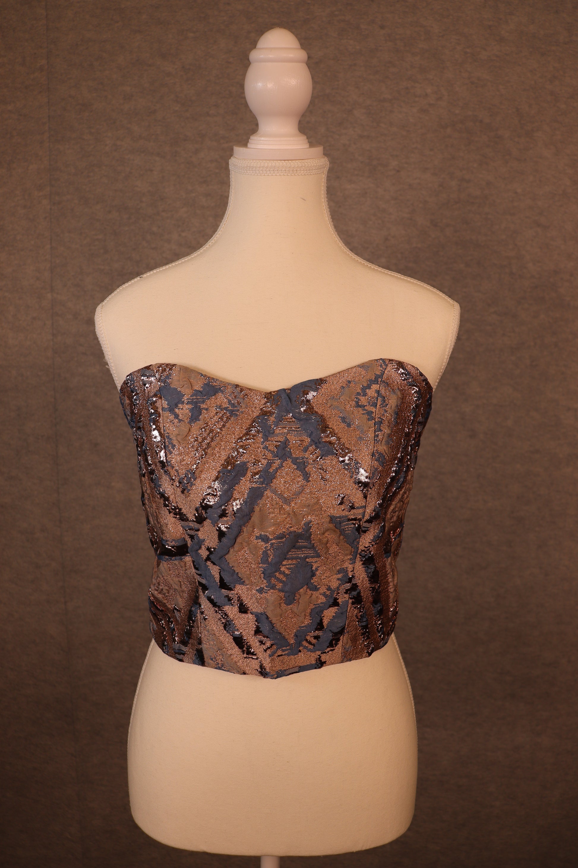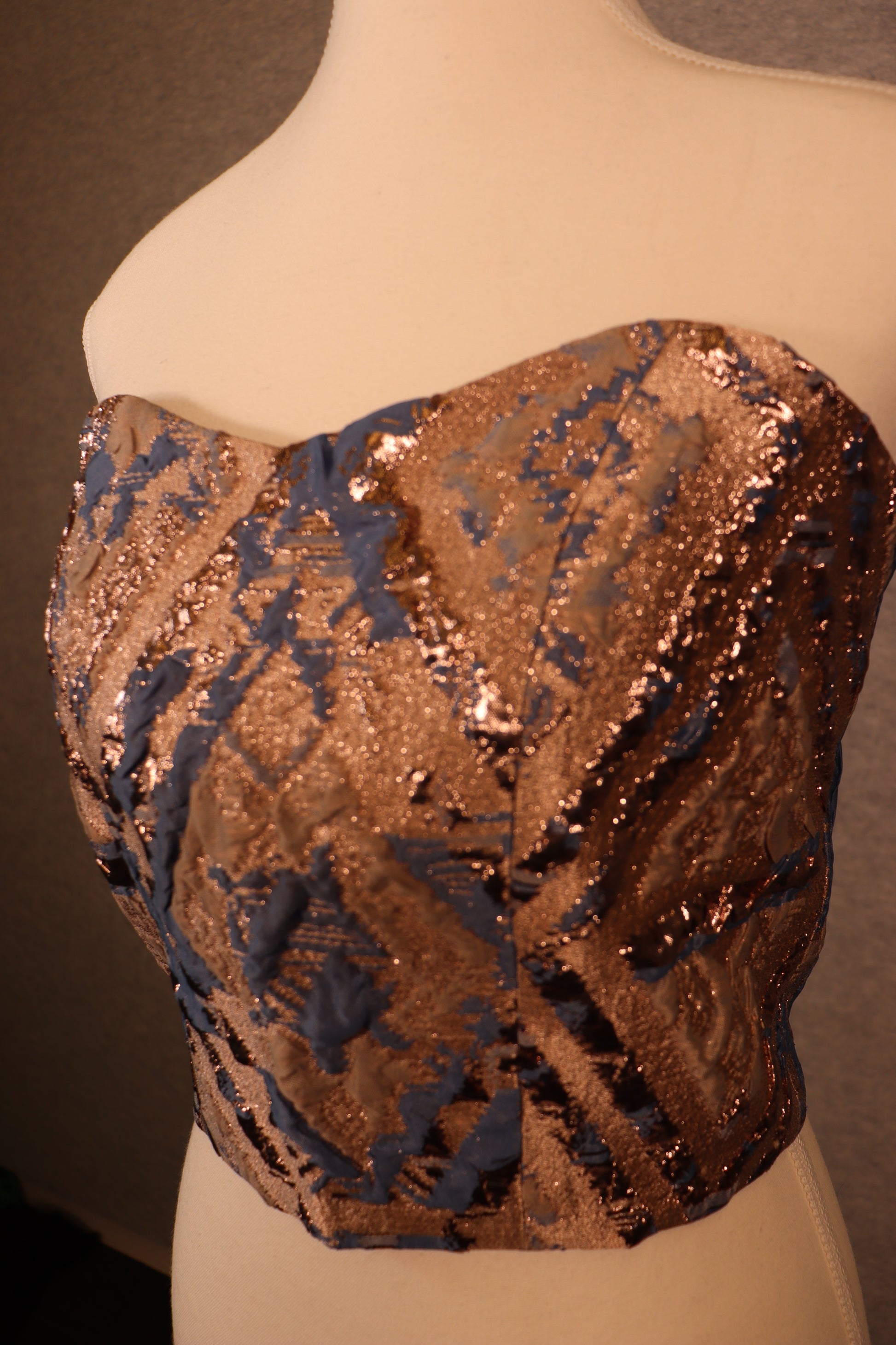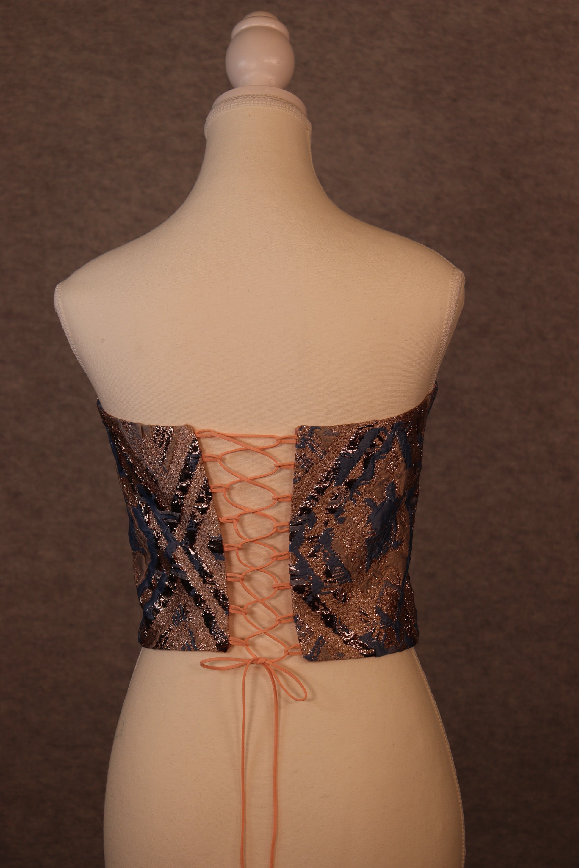 Women’s Rose gold Jacquard Lace-Up Crop Top with Blu Accent